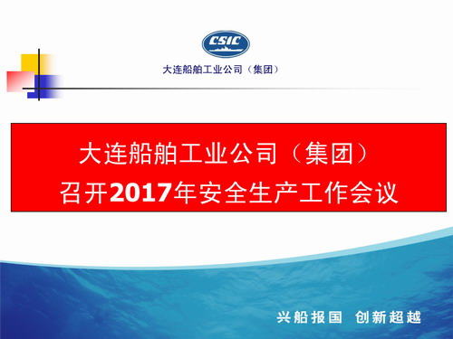 为认真贯彻落实中船重工质量和安全工作会议精神,总结大连地区2016年安全生产工作经验,做好2017年安全生产工作,深入开展“安全生产月”活动,2017年3月10日,大连船舶工业公司(集团)组织召开了2017年安全生产工作会议。